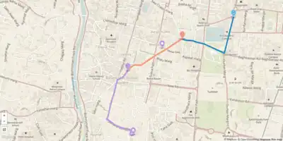 On the first day, the chariot is pulled from Jamal, Durbar Marg through Bhotahiti to Asan where it makes an overnight halt. The next day, the chariot is pulled through Indra Chok to Kathmandu Durbar Square where it makes its second stop. On the third day, the chariot is pulled through Maru and Chika: Mugha: Chikan Mugal to Lagan at the southern end of the historic section of Kathmandu.