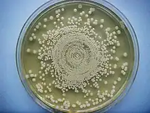 Colonies of Burkholderia pseudomallei on Mueller–Hinton agar after 72 hours incubation.