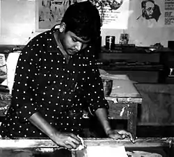 Jangarh Singh Shyam at work at Bharat Bhavan