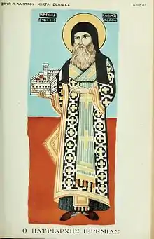 St. Jeremias was a native of Zitsa in Epirus,[2] and was raised without instruction.[3] He became Archbishop of Sofia on or before 1513.[4] On the 31 December 1522 he became Patriarch of Constantinople.[5]