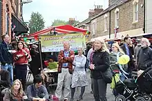 Jericho retains a strong community spirit. The Jericho Community Association runs the Jericho Community Centre[6] in Canal Street, maintains the community website, Jericho Online,[7] and organises the annual Jericho Street Fair which is held in mid-June each year, around the feast day of the patron saint Barnabas (11 June). It is also the focus for other community activities and has also been very active in campaigning for responsible development of the canal-side land behind St Barnabas Church, on a part of which it plans to build a new Community Centre as one of the four members of the Jericho Wharf Trust.[8] Jericho is served by a primary school, St Barnabas Primary School, a large primary school where over 50% speak English as a second language.