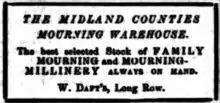 - ↑ "William Daft, Silk Mercer, Haberdasher, &c". Nottingham Review and General Advertiser for the Midland Counties. England. 27 March 1840. Retrieved 12 March 2018 – via British Newspaper Archive.