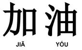 ![]() The Chinese characters (加油) for Jiayou along with the Mandarin pinyin (jiā yóu). | |||||||||||||||||||||||||||||||