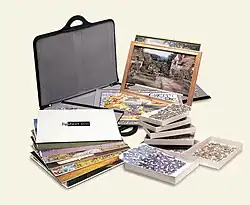 Jigsaw puzzle accessories are the accessories used to assemble, store, and display jigsaw puzzles.
