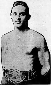 Joe Stecher (April 4, 1893 – March 29, 1974), sometimes spelled Joe Stetcher, was an American professional wrestler and three-time World Heavyweight Wrestling Champion. Known for his ferocity, tremendous leg strength and extensive knowledge of the sport, Stecher is considered to be one of the greatest wrestlers of all time.[1][2] In 2000, Stecher was inducted into the George Tragos/Lou Thesz Professional Wrestling Hall of Fame.