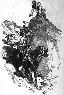 Colenbrander became Dunn's secretary in the later stages of the war and negotiated the surrender of Zulu Inkosi (chief) Zibhebhu kaMaphitha.[4] Colenbrander won Zibhebhu's trust and stayed on with him in Zululand as a secretary, trader and gunrunner.[4] In 1911 he recounted to a Washington Post correspondent an account of his service for Zibhebhu in defeating a raid from a neighbouring Zulu chief in 1879. Colenbrander said that he led a force of 17 mounted Zulu, that he had personally trained, against a force of 300 warriors. He stated that he killed 17 Zulu that day and while alone riding down the survivors was attacked by a single warrior. He was struck on the head by a war axe and, falling from his horse, broke his rifle. Colenbrander said he suffered another wound to his hands in warding of an assegai thrust and was struck three or four times again on the head, leaving the weapon embedded in his skull. He then struck the Zulu with the spur on his boot, bringing him to the ground, and releasing the assegai which he used to stab the warrior. Colenbrander then tried to mount his horse when the Zulu, who had survived, leapt to his feat and struck Colenbrander on the back of the head as he dived from the horse. Grappling together on the ground Colenbrander said he was able to use the bent assegai blade to kill the Zulu. He treated the wounds with disinfectant from his store and said that eight days later was in action again against another raid. The encounter left him with a 7 inches (180 mm) long scar down his left temple and cheek.[9]