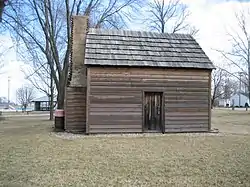 The John Patton Log Cabin is a log home located in Lexington Park District Park in Lexington, Illinois. The home was built in 1829 by John Patton, an early settler of McLean County. Patton, who was originally from Switzerland County, Indiana, came to a Kickapoo village in the area; he built his cabin with the tribe's assistance three months after his arrival. After McLean County was incorporated in 1831, the cabin became one of its first polling places. The cabin is now the only surviving early government building in the county as well as the only remnant of European interactions with Native Americans. The City of Lexington renovated the cabin in 1969 and now uses it as a museum.[2]