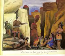 Judge Holden is a purported historical person who partnered with John Joel Glanton as a professional scalp-hunter in Mexico and the American Southwest during the mid-19th century.[1] To date, the only source for Holden's existence is Samuel Chamberlain's My Confession: Recollections of a Rogue, an autobiographical account of Chamberlain's life as a soldier during the Mexican–American War. Chamberlain described Holden as the most ruthless of the roving band of mercenaries led by Glanton, with whom Chamberlain had traveled briefly after the war: '[he] had a fleshy frame, [and] a dull tallow colored face destitute of hair and all expression;'[2] 'a man of gigantic size'; 'by far the best educated man in northern Mexico'; 'in short another Admirable Crichton, and with all an arrant coward'.