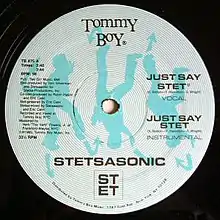 "Just Say Stet" is the debut single by American hip hop group Stetsasonic, released in 1985 via Tommy Boy Records. It was included on their debut album On Fire, released the following year. All members of the group have credits as composers of the song,[1] which they produced in collaboration with Eric Calvi and Robin Halpin as per the liner notes credits.