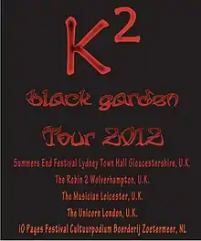 In 2007, this lineup went back to the drawing board to create what would become their long overdue second release, Black Garden.[3] Released on September 21, 2010 through Magna Carta Records, this outing showcases this modern rock quintet in an entirely new setting. With a central theme of Oceania, K² explores the hidden depths of this mysterious region and take the listener on a dark, sonic journey to places rarely visited, and offers a glimpse of a people unlike any other on earth.