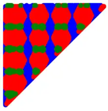 - The triangle is covered by all three colors.