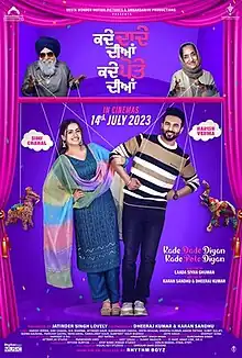 Kade Dade Diyan Kade Pote Diyan is a 2023 Punjabi film directed by Laada Siyan Ghuman and written by Karan Sandhu and Dheeraj Kumar.[1][2][3] It stars Harish Verma, Simi Chahal, B. N. Sharma, Seema Kaushal, Dheeraj Kumar and Sukhwinder Chahal.[4][5][6] The film was released on 14 July 2023.[7][8]