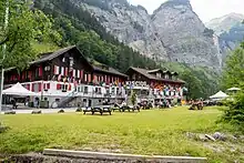 The Ueschinen Hut is situated in the Ueschinen Valley, at a height of 1,890 metres, and about two to three hours' walk away from the centre. It is usually open from May to October. During the summer it is used mainly as a base for climbing and hiking activities, but it may be used by groups at any time if weather allows. The hut is actually half of a cowshed, so sometimes it is a bit noisy at night. It can sleep up to 30 people and has a fully equipped kitchen with wood stove, a general living and eating room and a special toilet – there is no electricity and no shower.