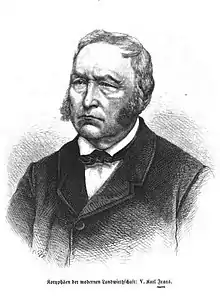 Karl Nikolaus Fraas (8 September 1810 – 9 November 1875), German botanist and agriculturist, was born at Rattelsdorf, near Bamberg. After receiving his preliminary education at the gymnasium of Bamberg, he in 1830 entered the University of Munich, where he took his doctor's degree in 1834. Having devoted great attention to the study of botany, he went to Athens in 1835 as inspector of the court garden; and in April 1836 he became professor of botany at the National University of Athens. In 1842-1843 he returned to Germany because of The Greek Revolution of September 3, 1843 all the foreign professors were expelled from the National University of Athens. He became teacher at the central agricultural school at Schleißheim Germany. In 1847 he was appointed professor of agriculture at Munich, and in 1851 director of the central veterinary college. For many years he was secretary of the Agricultural Society of Bavaria, before resigning in 1861. He died at his estate of Neufreimann, near Munich.[1]