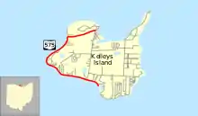 Kelleys Island is served by Ohio State Route 575. The route was created in 1937 and has not changed since, and is one of Ohio's only state highways to be disconnected from the rest of the system.