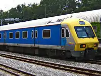 The MR began to modernize the equipment with the ordering of diesel locomotives and railcars to replace steam-hauled services, and the first diesel locomotive entered service in 1957. The railcars entered service in 1960, initially on short-haul services.[2] Rapid services were introduced later, cutting travel times from Singapore to Kuala Lumpur down to six hours, which was competitive at the time.[3] MR and later KTM continued ordering more diesel locomotives through the decades, rendering the old steam locomotives redundant. The last steam locomotive was withdrawn from service in 1974.