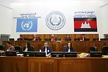 The Extraordinary Chambers in the Courts of Cambodia (ECCC; French: Chambres extraordinaires au sein des tribunaux cambodgiens (CETC); Khmer: អង្គជំនុំជម្រះវិសាមញ្ញក្នុងតុលាការកម្ពុជា), commonly known as the Cambodia Tribunal or Khmer Rouge Tribunal (សាលាក្ដីខ្មែរក្រហម), was a court established to try the senior leaders and the most responsible members of the Khmer Rouge for alleged violations of international law and serious crimes perpetrated during the Cambodian genocide. Although it was a national court, it was established as part of an agreement between the Royal Government of Cambodia and the United Nations, and its members included both local and foreign judges. It was considered a hybrid court, as the ECCC was created by the government in conjunction with the UN, but remained independent of them, with trials being held in Cambodia using Cambodian and international staff. The Cambodian court invited international participation in order to apply international standards.[1]