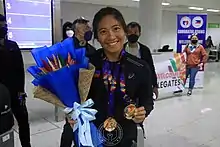 ![]() Mangrobang with her medals from the 2021 Southeast Asian Games | |||||||||||||||||||||||||||||||||||||||||||||||||||||||||