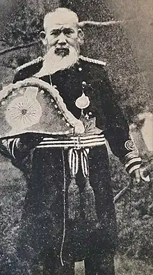 Kinjirō Ashiwara (Japanese: 葦原 金次郎, Hepburn: Ashiwara Kinjirō, IPA: [a̠ɕiɰᵝa̠ɾa̠ kʲĩɴʑiɾoː]; November 3, 1850[2][3][lower-alpha 1] – February 2, 1937) was a self-proclaimed "emperor" who rose to a celebrity status with his grandiose delusions and theatrical antics that were covered by the Japanese press for decades, beginning in the Meiji era. He styled himself first as Shogun Ashiwara (葦原将軍, Ashiwara Shōgun),[5] then later as Emperor Ashiwara (葦原皇帝, Ashiwara Kōtei, or 葦原天皇, Ashiwara Tennō)[6] and Sovereign Ashiwara (葦原帝, Ashiwara Mikado).[4]
