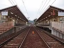 The station has two side platforms serving two tracks.