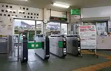 The station has a "Midori no Madoguchi" staffed ticket office. Suica farecard can be used at this station.[1]