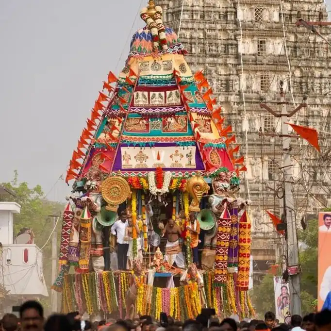 One of the major attractions during Brahmhotsavam is pulling the chariot. The chariot contains the idols of the deities Sri Ram, Maa Sita, Lakshman, and Hanuman. Hundreds of people pull the chariot with the help of chains.