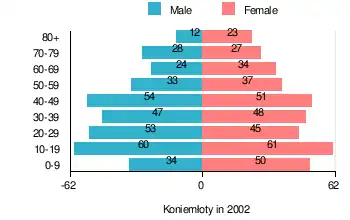 Figure 1. Population pyramid of village in 2002 — by age group and sex[1]