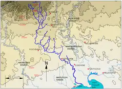 ![]() Contour map of the Kororoit Creek and its tributaries, in Greater Melbourne. | |