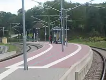 Services running to Freudenstadt only use the AVG's GT8-100D/2S-M vehicles (numbered 837 to 922 and allowing level access at their central doors to 55 cm high platforms), since only they are allowed to operate over the steep route between Baiersbronn and Freudenstadt.