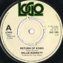 The rare Logo Records Return of Kong 7". Note the alternate name "Willie" Barrett