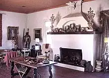The Lyons and Campbell Ranch Headquarters is located in the tiny village of Gila, by the Gila River, on New Mexico State Road 211, about a mile east of its intersection with U.S. Route 180. Tom Lyons & Angus Campbell carved a cattle empire out of mountain, plains and desert to create the second largest cattle operation in the U.S. At its peak around 1900 the L.C. Ranch controlled over one million acres, carried a herd of 60,000 head, and shipped up to 30,000 head of cattle to market per year. It employed up to 75 cowboys working seven chuckwagon teams on the open range and 100 Mexican families working the irrigated farmland along the Gila. The lavishly furnished house and hunting lodge up river were designed to entertain investors from the East coast.[2] It is an E-shaped adobe building, created from expanding what is believed to be a U-shaped old Spanish Rancho Del Paz estancia built in 1811 by two detachments of Spanish troops to feed the miners at Santa Rita del Cobre, at that time the only copper mine in North America. The expansion added 15 rooms to the main house, a 6 room bunkhouse, a store with saloon, Catholic church, post office, jail, barns and warehouse, and used adobe bricks that are believed to have been taken from the nearby, abandoned Fort West. It included a trapdoor under the bed in Tom Lyons' bedroom, supposed to provide a safe place for him. He was threatened by struggles over open range, water rights, and sod-busters, and in fact was ultimately murdered, bludgeoned with a hammer and iron bar by hired assassin Felix Jones and two accomplices in 1917 in El Paso, Texas, chronicled by Jerry Lobdill in "The Last Train to El Paso".