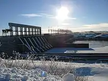 The La Grande-1 (LG-1) is a hydroelectric power station on the La Grande River that is part of Hydro-Québec's James Bay Project. The station can generate 1,436 MW and was commissioned in 1994–1995. A run of the river generating station, it is one of only two generating stations of the James Bay Project that use a reservoir without any major water-level fluctuations (the Laforge-2 generating station is the other). Thus, the amount of electricity generated by the station depends almost entirely on the water-flow of the river, which is largely controlled by upstream reservoirs and generating stations.[1]