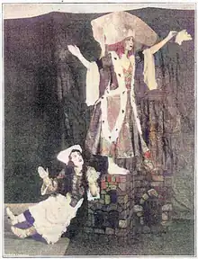 The opera's first, ornate production, costing 150,000 francs, was conducted by François Habeneck. The performances of the soprano Cornélie Falcon in the title role and the dramatic tenor Adolphe Nourrit as Eléazar were particularly noted. Nourrit had significant influence on the opera: Eléazar, originally conceived as a bass part, was rewritten for him, and it appears that it was largely his idea to end act 4 not with a traditional ensemble, but with the aria "Rachel, quand du seigneur" for which he may also have suggested the text. The production was notable for its lavishness, including the on-stage organ in Act I, the enormous supporting cast, and the unprecedentedly elaborate decor. Two teams of scenic artists took responsibility over the stage decorations, Charles Séchan, Léon Feuchère, Jules Diéterle and Édouard Desplechin designing Acts I, II, IV and V, and René-Humanité Philastre and Charles-Antoine Cambon providing the materials for Act III.[6]