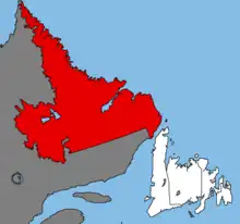 The riding covers all of Labrador and with just 26,000 people located in the riding it is the least populous in Canada.[2] From 2005 to 2011, the riding was represented by Liberal MP Todd Russell. He was defeated by Conservative Peter Penashue in the 2011 federal election.[3] Following allegations of irregularities in his campaign spending, Penashue announced on March 14, 2013 that he would resign his seat and run again as a candidate in a new by-election.[4][5] Penashue subsequently lost the by-election to Liberal candidate Yvonne Jones. Jones was re-elected in the 2015, 2019, and 2021 federal elections. The riding is viewed as a Liberal stronghold.