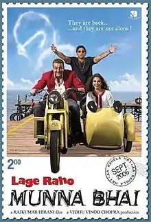 Lage Raho Munna Bhai (pronounced [ləˈɡeː rəˈɦoː mʊnːaːˈbʱaːi] ; translation: Keep Going, Munna Bro) is a 2006 Indian Hindi-language satirical comedy drama film written, edited and directed by Rajkumar Hirani, who also co-wrote the screenplay with Abhijat Joshi, and produced by Vidhu Vinod Chopra under the production banner of Vinod Chopra Films. The film was released worldwide on 1 September 2006 and is the second installment of the Munna Bhai film series after its prequel, Munna Bhai M.B.B.S. (2003), with Sanjay Dutt and Arshad Warsi reprising their roles as Munna Bhai, a gangster in the Mumbai underworld, and his sidekick, Circuit, respectively. Vidya Balan portrays the female lead, replacing Gracy Singh from the original, while several other actors from the prequel, notably Jimmy Sheirgill and Boman Irani, appear in new roles, and Dia Mirza also appears in a small role in the film. In this film, the eponymous lead character begins to see the soul of Mahatma Gandhi, which is portrayed by Dilip Prabhavalkar. Through his interactions with Gandhi, he begins to practice what he refers to as "Gandhigiri" (a neologism for "Gandhism") to help ordinary people solve their problems.