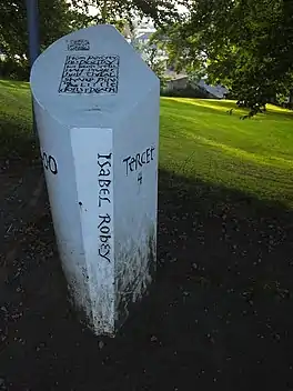 Carol Ann Duffy, UK poet laureate and Professor of Modern Poetry at Manchester Metropolitan University, was commissioned to create a poem to mark the anniversary of those 1612 witch trials. The poem, The Lancashire Witches, is made up of ten tercet verses, for the ten people hanged at Gallows Hill in Lancaster. Stephen Raw designed waymarkers, each inscribed with a verse of a poem and featuring the name of one of those executed, which have been placed on the route.[3]