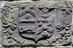 Richard II Pollard (d. 1660) (son), who married Joane Philipp, a daughter and co-heiress[30] of John Philipp of Plymouth, by whom he had issue 6 sons and 7 daughters. It is possibly he (or his father) who erected the surviving heraldic panel above the front door of Langley Barton showing the arms of Pollard in four quarters and the initials "RP". He may have been the Richard Pollard who between 1640 and 1651 was the "Gentleman Steward" to the princely household[31] of Henry Bourchier, 5th Earl of Bath (1593–1654) at Tawstock Court, 3 miles north of Langley.[32] However it is known that the wife of the steward Richard Pollard was Sara Voysin (d. 1652) (marriage at Swimbridge, near Tawstock, on 14 Apr 1646) of Geneva, Switzerland, a "gentlewoman of impeccable antecedents in Continental Protestantism",[33] who was an attendant of the Earl's wife, and whose surviving mural monument in Tawstock Church is inscribed as follows: