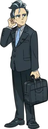 Larry, known as Aoki (Japanese: アオキ) in Japan, is a fictional character in Nintendo and Game Freak's Pokémon media franchise. Introduced in Pokémon Scarlet and Violet, he serves as both a Gym Leader and an Elite Four member in the game's setting, specializing in Normal and Flying-type Pokémon. He is resembled to depict a stereotypical Japanese salaryman, and is known for his expressionless dialogue and personality. Since his introduction, Larry has received highly positive critical response, being highlighted as relatable,[1][2] and has been described as a breakout character.[3]