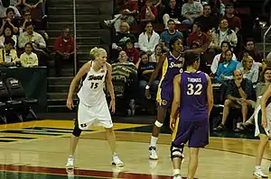 In 2004, her Seattle Storm team won the WNBA Championship.[3][28] She was again named to the 2004 All-WNBA First Team.[3] This season, she averaged 20.5 points per game.[3] She played in 31 games, averaging 34.5 minutes per game.[52][54] She averaged 2.0 blocks per game.[54] She made 220 field goals and ranked second in the league in this category. She ranked fourth in the league with 460 field goal attempts. She ranked seventh in the league with a field goal percentage of 47.8%, and her three-point field goal shooting percentage was 45.2%, ranking third in the league. She ranked first in the league for total points with 634, and for points per game with 20.52 points on average, and had a player efficiency of 28.0, second in the league in this category. She ranked third in the league with a true shooting percentage of 59.0%, and ranked first in the league for offensive win shares with 6.1.[52]