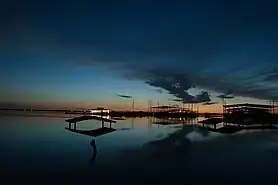 Water constitutes about 14% of the city's total area,[47] including Lewisville Lake, the Elm Fork of the Trinity River, and two local tributaries of the Elm Fork - Prairie Creek and Timber Creek. A riparian zone encompasses a portion of the city in the southeast.[50] The intersection of the Elm Fork and Lake Lewisville has given rise to a delta at the southern end of the lake, extending 6.9 miles (11.1 km) south.[51] The Federal Emergency Management Agency has labeled much of the area surrounding the delta as "Zone AE", meaning the area is subject to 100-year flood precautions.[52]
