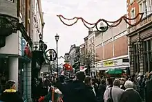 Lincoln Christmas Market was the first Christmas market in the United Kingdom. It was first held in 1982,[4] after Council Leader, Jim Sullivan, Bob Hodson and Charles Ireland visited Neustadt an der Weinstrasse (Lincoln's twin town) and were impressed by the Neustadt Christmas Market. When they came back to Lincoln, they set up their own Christmas market consisting of just eleven stalls. The market was cancelled in 2010 due to severe weather conditions both in the city of Lincoln and the surrounding region.[5] This was the first time the market had been cancelled in over 28 years. In 2017, the last day of the market was cancelled due to the forecast of bad snow. It turned out that the snow never materialised and Lincoln City council were left embarrassed by the decision as they received much criticism from the public and press. The market was held for the last time in 2022.[6]
