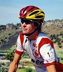 ![]() Linda Jackson, wearing the Canadian national championship jersey in 1999 during the Women's Challenge stage race. | |||||||||||||||