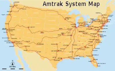 Amtrak operates the following inter-city and long-distance passenger train routes.