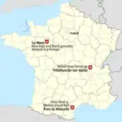 | 6 April 2008 | Vandalism | 0 | 0 | Arras | 148 Muslim graves were desecrated at the Notre Dame de Lorette, France's largest WWI cemetery. President Nicolas Sarkozy condemned the attack as a "hateful act" and the "most inadmissible kind of racism"[89] | Unknown |