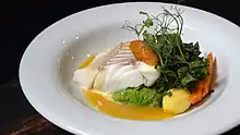 • Smørbrød – a traditional open-faced sandwich that usually consists of a piece of buttered bread topped with commercial or homemade cold cuts, pieces of meat or fish, cheese or spreads, and garnishes.[25]