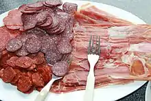 • Fenalår – a traditional cured meat made from salted and dried leg of lamb, often served with other preserved food at a Christmas buffet or at Norwegian Constitution Day.[36]