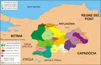 - ↑ Formerly each of these three tribal capitals sent a tetrad (four delegates) to a governing civil council. Now, a koinon was formed of the three poleis, and was placed in the care of another, religious council. The religion was the worship of deified Augustus