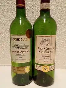 IGP-labeled wine bottles