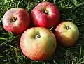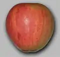 Astillisch[5] Germany Raised 1929 Parentage Red Astrachan x Signe Tillisch. Width 63–70 mm, height 56 mm. Flesh yellowish-white, juicy, soft, subacid. Eating Pick August. Use August.