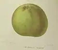 American Golden Pippin (a.k.a. Golden Pippin, Ribbed Pippin, Golding, New York Greening, Newtown Greening, Golden Apple)[8] US Before 1850 Yellow with russet. Flesh is yellowish, juicy, aromatic, subacid, very good. Width 79 mm (3.1 in), height 65 mm (2.6 in). Stalk 16 mm (0.63 in). Tree does not bear young. Eating Use November–February